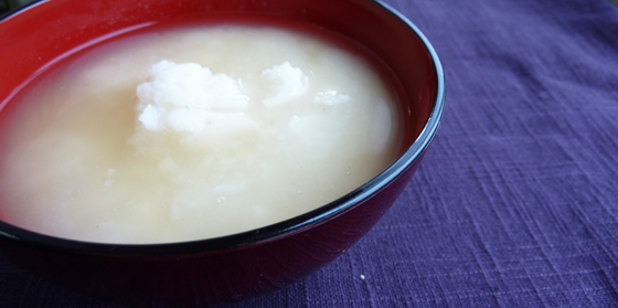 HOME » 美味しいお味噌レシピ » 国産米仕込み 米こうじみそ(粒みそ)1㎏ » おろしレンコンのみそ汁